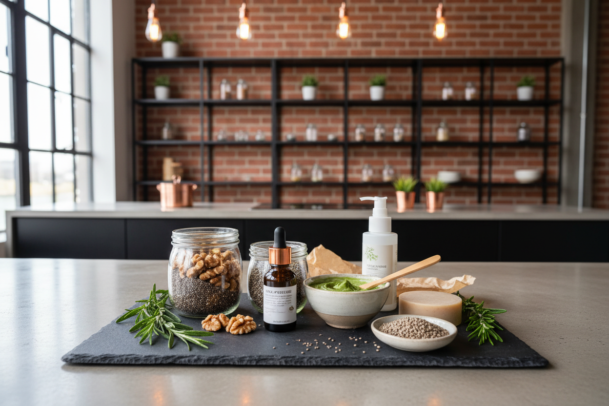 Täglich einen Esslöffel kaltgepresstes Leinöl über den Salat, in den Smoothie oder ins Müsli – und Deine Haut wird es Dir danken. Auch Chiasamen, Walnüsse und Hanfsamen sind gute Omega-3-Quellen.