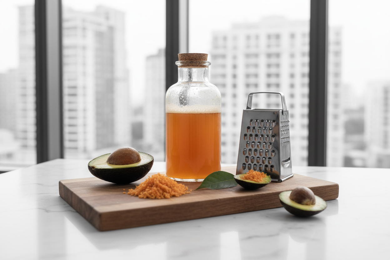 Avocado-Kerne stecken voller bioaktiver Verbindungen wie Flavonoide und Antioxidantien. Eine Studie von 2024 zeigt, dass Avocado-Nebenprodukte wertvolle entzündungshemmende und antioxidative Eigenschaften besitzen - perfekt für die Haarpflege. Statt die Kerne wegzuwerfen, kannst du daraus ein natürliches Zero-Waste-Shampoo herstellen!