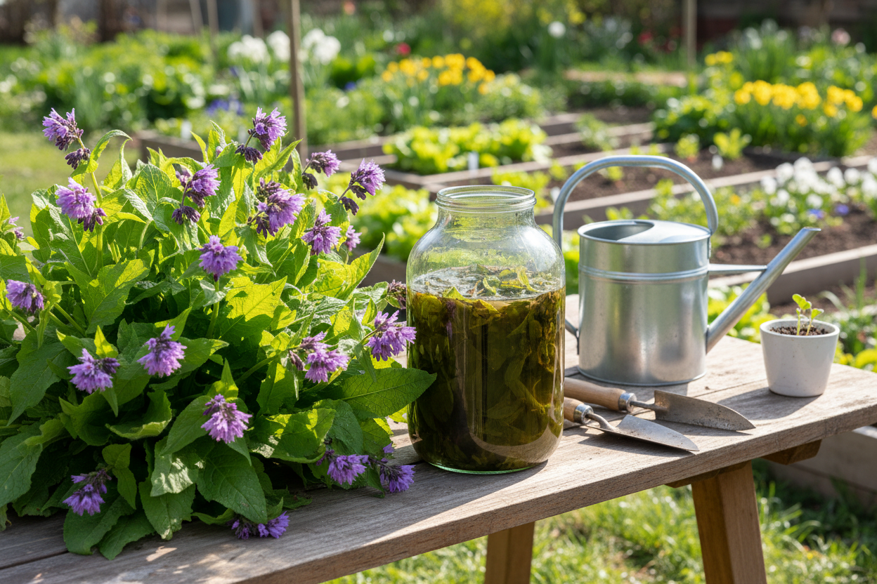 Wie stellt man Beinwell-Jauche als veganen Gartendünger her?