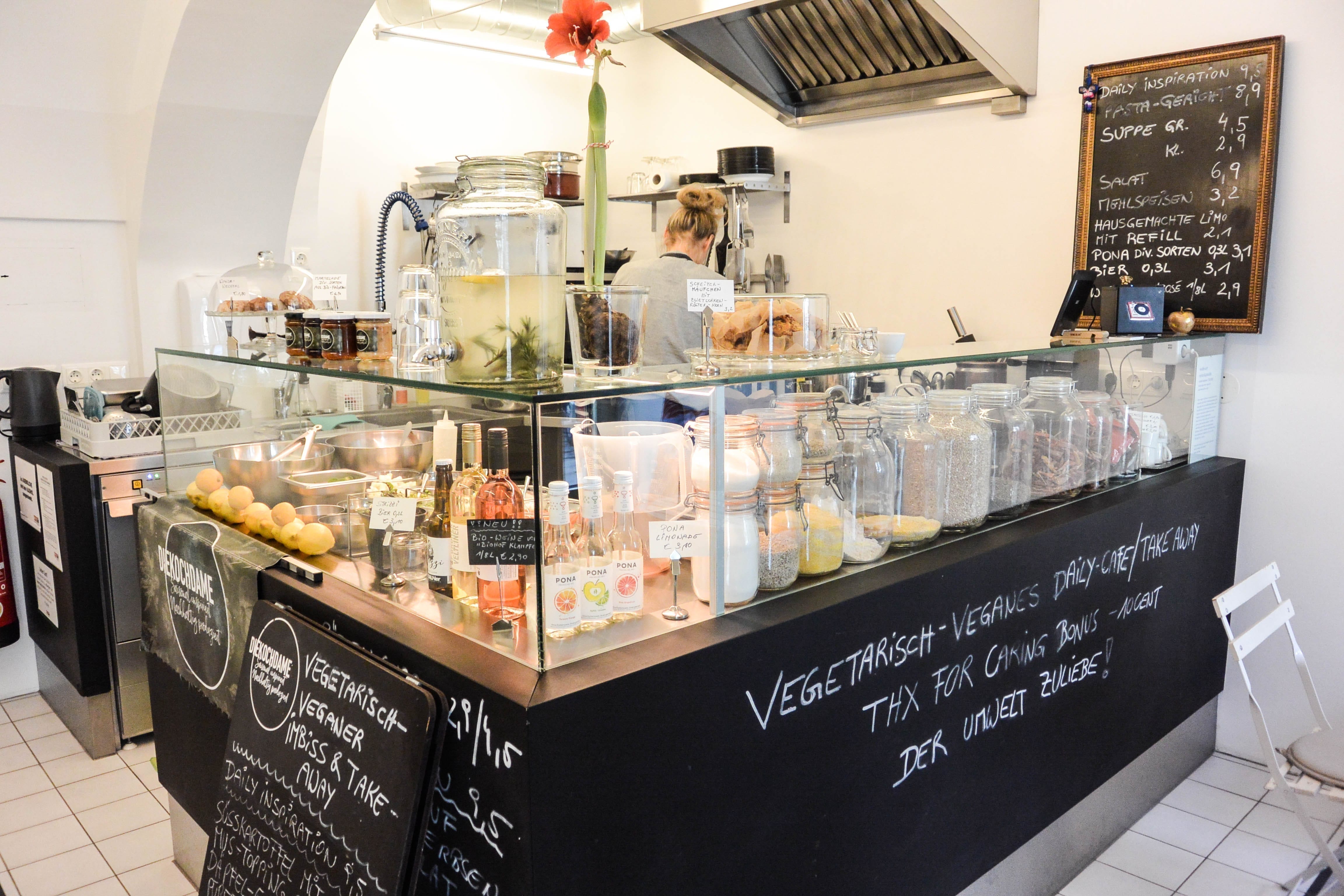 Auf der Wiedner Hauptstraße 37 findest du Judith aka Die Kochdame. Sie ist Quereinsteigerin und kommt eigentlich aus dem Bereich Umweltbiotechnologie. Am Land aufgewachsen, wurde Judith in den frühen 90ern Vegetarierin und hat da schon ihre Liebe zum Kochen und Backen entdeckt - viele Kaufoptionen gab es für eine fleischlos Ernährung nämlich nicht in ihrer Umgebung. Die Kochleidenschaft hat sie auch als Studentin, als sie nach Wien gezogen ist beibehalten und hatte schon immer den Wunsch irgendwann einen eigenen Laden zu haben. Erst nur für Freunde und Freundesfreunde im kleinen Kreis gekocht, hat die Kochdame im Jänner 2018 in Wieden ihre Pforten geöffnet. Hier gibt es "Fast Slow Food", wie sie selbst sagt. (c) VeganBlatt Täglich hast du die Wahl zwischen einem Pasta-Gericht, der Daily Inspiration (Tagesgericht), Suppe, Salat und einer Süßigkeit als Nachspeise (oftmals auch glutenfrei). Das Besondere bei Judith ist, dass die Preise immer gleich bleiben und sie niemals nach einem Rezept kocht. Ihr ist es wichtig ihre Gäste zu begeistern, ihre Kreativität in die Gerichte einfließen zu lassen und den Gaumen ihrer Kunden zu kitzeln. Alle Gerichte sind saisonal und mit regionalen Zutaten gekocht. Prinzipiell ist alles von Grund auf vegan, nur die unterschiedlichen Toppings können auch als vegetarische Option gewählt werden. Besonders toll fand ich, dass Judith für ihre täglichen Pasta Gerichte keine vorgekochten Nudeln verwendet, sondern jede Portion frisch zubereitet. Auch total super ist, dass auf individuelle Allergien oder Vorlieben eingegangen werden kann, da es oft mehrere Komponenten gibt, aus denen die einzelnen Gerichte bestehen. Was auf dem Menü steht, findest du immer aktuell auf Instagram zusammen mit einem Foto der Tagesgerichte (und ich kann dir versprechen, schon hier läuft dir das Wasser im Mund zusammen). Jedes Gericht kann to stay, aber auch to go genommen werden und wenn du deine eigenen Take Away Gefäße mitbringst, bekommst du sogar noch einen Discount auf deinen Einkauf. (c) VeganBlatt Dadurch, dass hier jede Speise - egal ob to go oder zum dort Essen - mit Liebe zubereitet wird, kann es auch mal zu einer kleinen Wartezeit kommen. Hierfür ist Judith Teil der Gruppe Hol'sApp. Einfach bequem von zu Hause oder vom Office aus vorbestellen und ohne Wartezeit abholen, sobald es fertig gepackt ist.