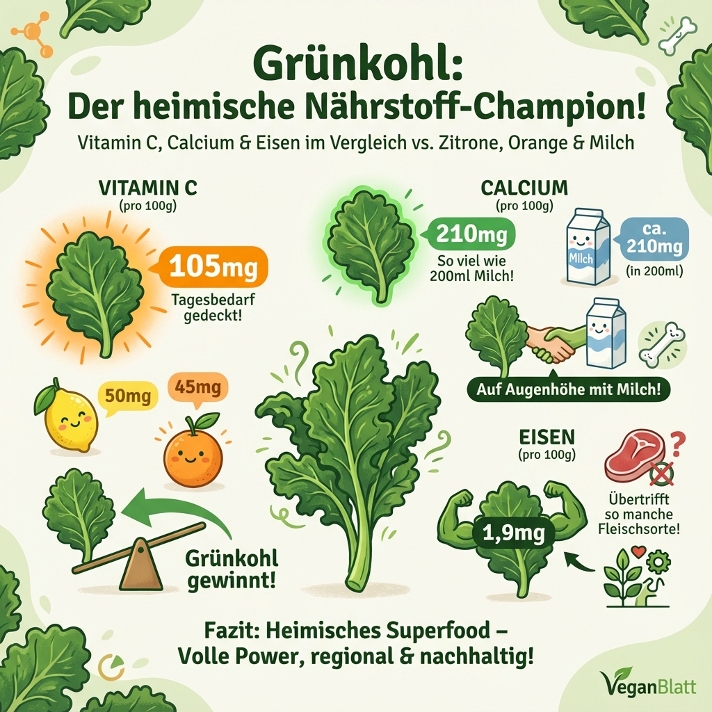 Mit 1,9mg Eisen pro 100g übertrifft Grünkohl laut Apotheken Umschau so manche Fleischsorte - perfekt für die pflanzliche Ernährung!