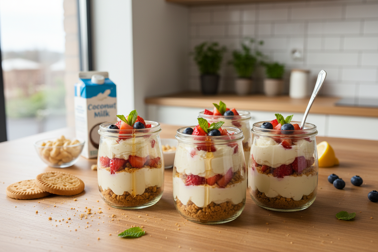 KI-generiertes Bild - aus dem Rezept Veganer Erdbeer-Cheesecake im Glas. © AI generiert.