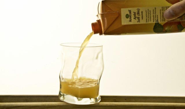 Fruchtsäfte verschiedenster Art (darunter auch Wein, bevor er beginnt zu gären und Alkohol zu produzieren) werden meistens "geklärt", d.h. von Schwebstoffen befreit. Dabei kommen oft Gelatine oder Hühnereiweiß zum Einsatz. Das große Problem ist: da diese Produkte keine Inhaltsstoffe sind, sondern nach der Behandlung wieder entfernt werden, sind sie nicht kennzeichnungspflichtig. Leider ist es sehr schwierig, herauszufinden, ob ein entsprechendes Produkt vegan ist, oder nicht. Abgesehen von einer Nachfrage beim Hersteller kann man sich nur mit Nachschlagen behelfen - glücklicherweise liegen einige Listen mit dahingehenden Daten z.B. bei der veganen Gesellschaft auf (hier der Link zur Produktdatenbank). Sogar natürtrübe Säfte können geklärt sein. Der Lichtblick: Auf EU-Ebene wird bereits über eine Kennzeichnungspflicht für tierische Produkte gesprochen. -Ag