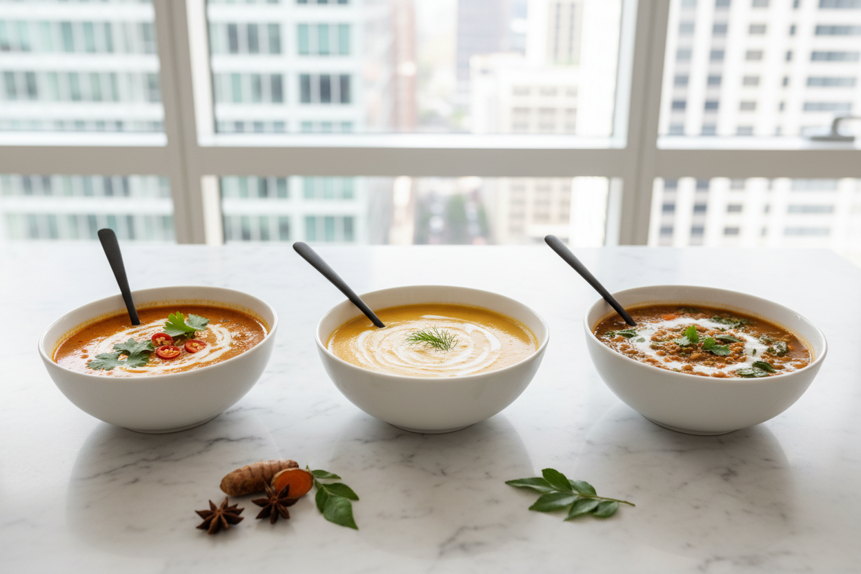 Kokosmilch verwandelt eine einfache Gemüsesuppe in ein cremiges, aromatisches Gericht - ganz ohne tierische Zutaten. Die weiße pflanzliche Flüssigkeit aus dem Fruchtfleisch der Kokosnuss gibt Suppen Körper, Tiefe und ein mildes tropisches Aroma, das besonders gut mit Ingwer, Kurkuma und Chili harmoniert. Ob asiatische Curry-Suppe, samtige Karotten-Cremesuppe oder herzhafte Linsensuppe - Kokosmilch ist eine der vielseitigsten Zutaten in der veganen Suppenküche.