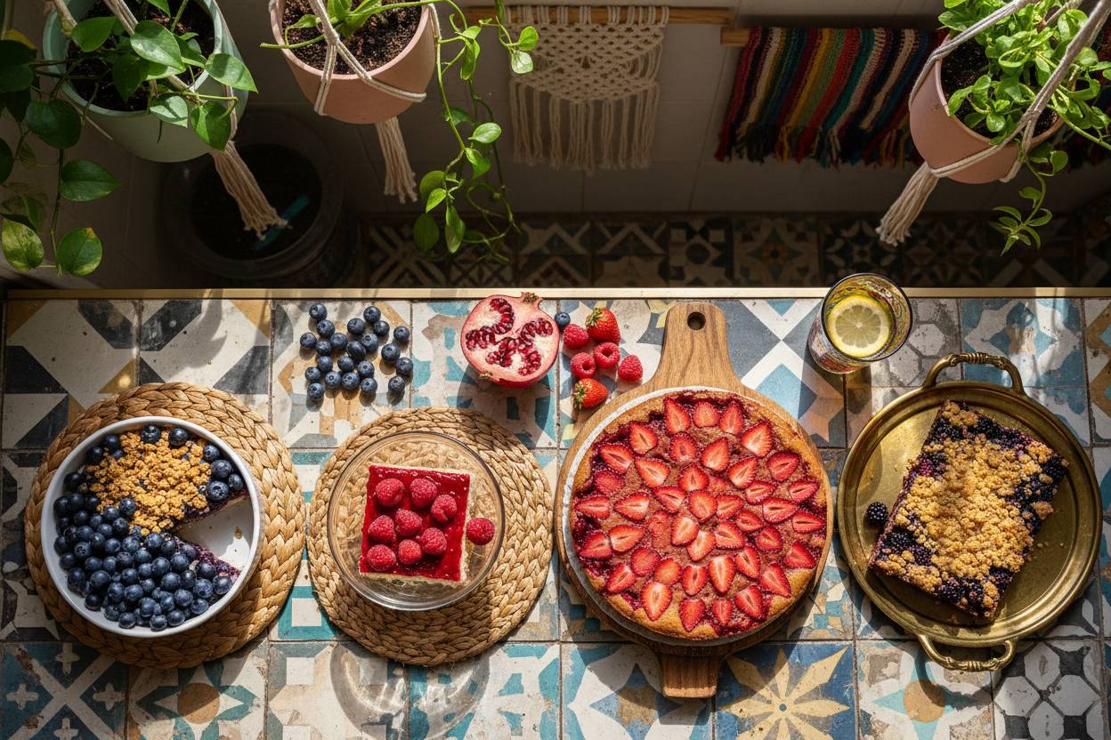 Veganer Beerenkuchen vereint das Beste der Beerensaison mit unkompliziertem pflanzlichen Backen: saftige Erdbeeren, intensive Heidelbeeren, säuerliche Himbeeren oder gemischte Beerenmischungen - frisch aus dem Garten oder ganzjährig aus dem Tiefkühler. Das Ergebnis ist jedes Mal bunt, aromatisch und mit einfachen Tricks auch ohne Ei und Milchprodukte perfekt gelungen.