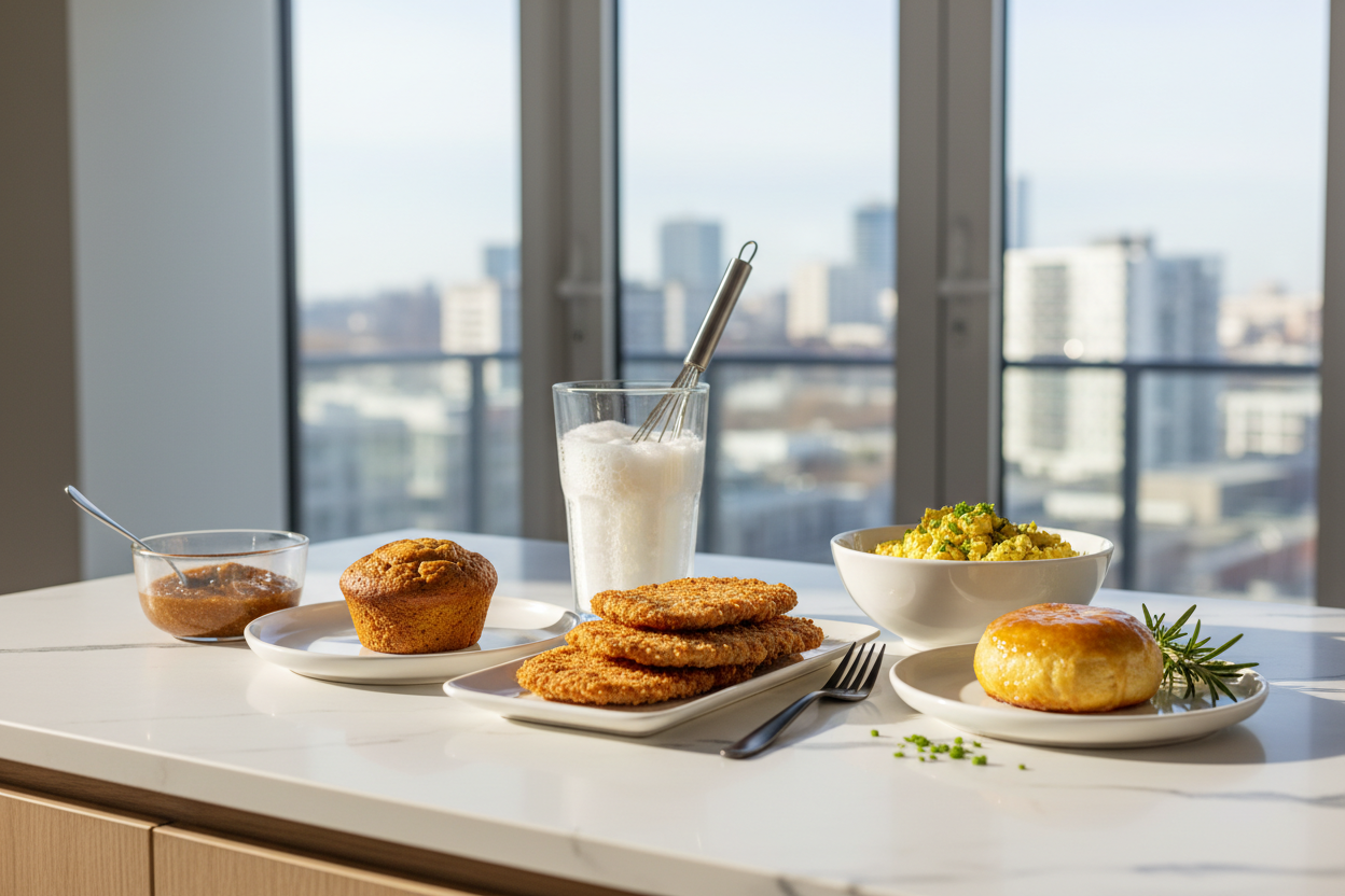Ob Kuchen, Schnitzel oder Scrambled Tofu – Eier spielen in der Küche viele verschiedene Rollen. Als Bindemittel im Teig, als Panade beim Panieren, als Eiweißlieferant fürs Rührei oder als glänzende Glasur auf dem Gebäck. Wer vegan kocht, braucht für jede dieser Aufgaben eine andere Lösung. Dieser Guide zeigt, welcher vegane Ei-Ersatz wofür am besten geeignet ist – mit genauen Mengenangaben und Profi-Tipps.