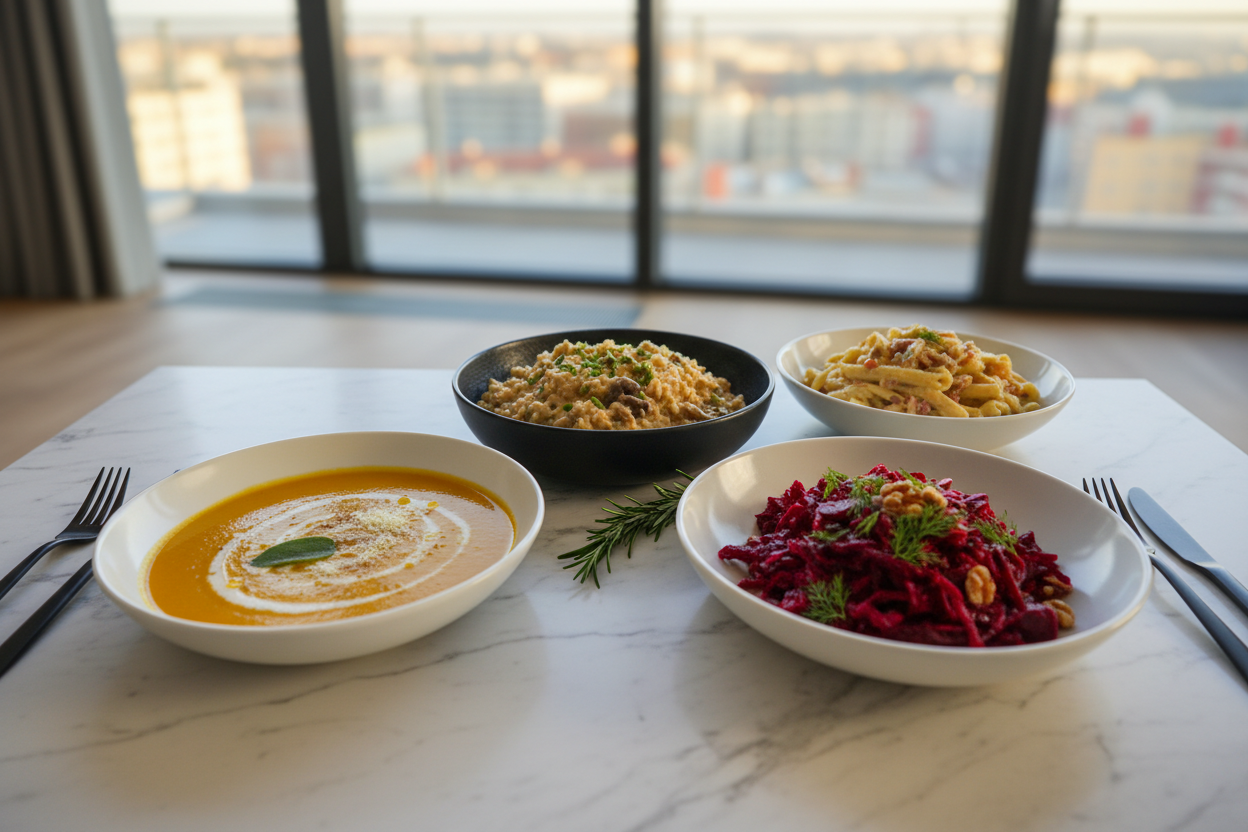 Ein Drei-Gänge-Menü ist klassisch, aber nicht überwältigend. Plane so, dass du den Abend genießen kannst und nicht die ganze Zeit in der Küche stehst.