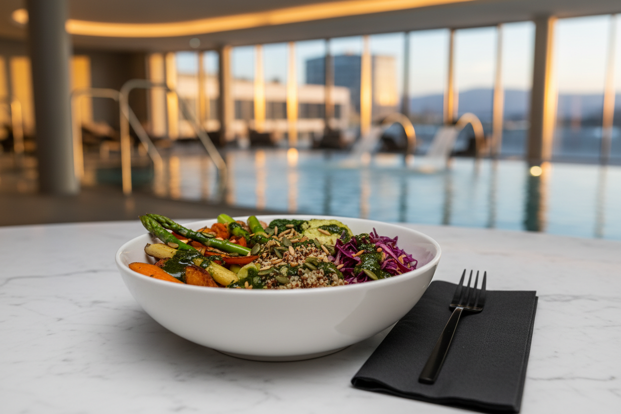 Mehr pflanzliche Optionen im Standard-Buffet: Immer mehr Thermen integrieren vegane Gerichte direkt ins reguläre Angebot — nicht als Sondermenü auf Anfrage, sondern als festen Bestandteil. Laut ProVeg Austria wächst die Nachfrage nach pflanzlichen Speisen in der Gastronomie kontinuierlich, und Wellness-Betriebe reagieren darauf.