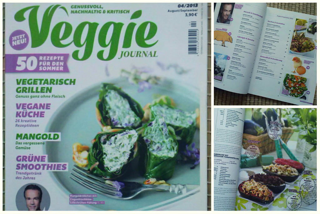 Juhuu - Die erste Ausgabe des Veggie Journals ist da! Zwischendurch ist es ja doch schön, etwas auf Papier gedrucktes zu lesen, etwas was in die Tasche passt, überall zum Reinschmöckern bei der Hand ist ohne dass der Akku ausgeht :) Außerdem glänzt hier nicht das Papier, sondern der Inhalt! Sehr augenschmeichelnd ist auch das Layout. An der Stelle schon mal ein großes Lob - nicht nur gut gemacht, sondern wirklich schön gemacht! Mit über 100 Seiten hat man auch wirklich was zu lesen. Je nach Lust und Laune kann man sich in gesellschaftskritische Diskussionen und Gesundheitsthemen vertiefen, die durch die Blickwinkel jeweiliger ExpertInnen oder schöne Infografiken ergänzt sind. Für die etwas kurzweiligere Lektüre empfiehlt sich der große Lifestyle-Teil mit Produkt-, Städte-/Restaurant-, Buchvorstellungen und einer Menge mehr. Ein wahrer Augenschmeichler sind zudem die Rezepte, jedoch stehts hier ca. 50:50 zwischen vegan und vegetarisch. Mit etwas Küchenerfahrung lassen sich die Milchprodukte auch aus den vegetarischen Rezepten simpel veganisieren. Schön wäre hier gleich eine pflanzliche Alternative anzuführen. So würde man auch den VegetarierInnen zeigen, wie einfach der nächste Schritt Richtung Veganismus eigentlich ist. Die Küchenstars, die einem aus dem Magazin entgegenlachen, sind auch durch die Bank VeganerInnen oder habe ich hier was bzw. wen ausgeblendet? Erhältlich ist das Magazin am Kiosk für recht günstige € 3,90 oder per Abo für € 23,- innerhalb Deutschlands und € 36,- im EU-Raum für ein Jahr. Unser Fazit: Wir sind begeistert, da das wirklich interessante Magazin eine breite Zielgruppe anspricht und sich so die Alltagstauglichkeit von Veganismus immer weiter herumspricht und nebenbei langsam seinen MüsliesserInnen-Charme einbüßt. Eine große Bereicherung nicht nur für die einzelnen LeserInnen, sondern auch für die Etablierung des Themas Veganismus. In dem Sinne: Vielen Dank und viel Erfolg, liebe Veggie Journal Redaktion und Herausgeber!