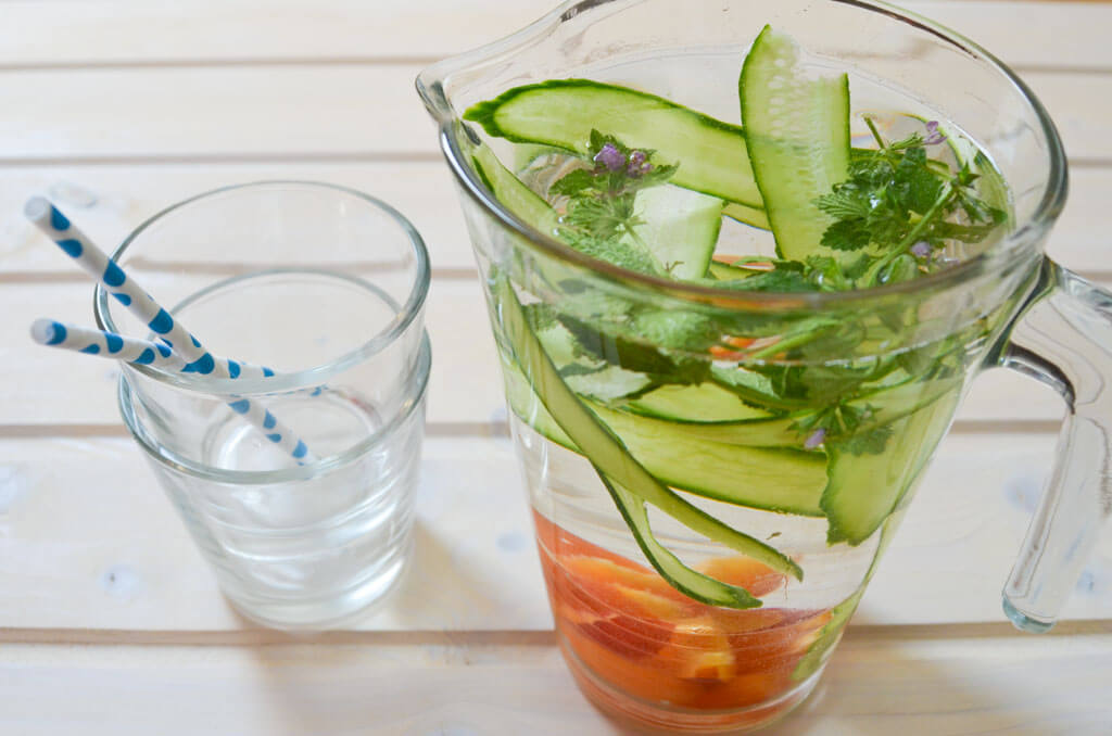 Selbst hergestelltes Vitaminwasser hilft dem Körper dabei, natürlich zu entgiften, da es uns mit essenziellen Vitaminen und Mineralstoffen versorgt und zusätzlich den Abtransport von Schadstoffen erleichtert!