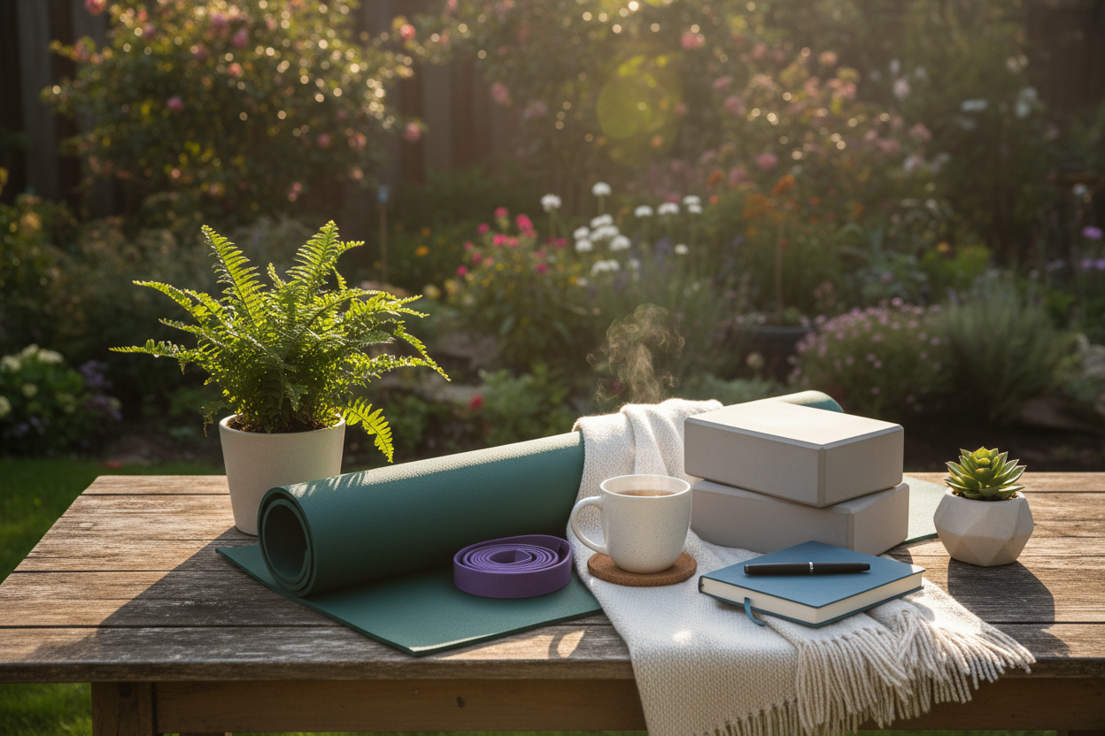 - Für den Anfang genügt wirklich die Matte. Hilfreich, aber nicht notwendig: ein Yoga-Block für Modifikationen und ein Gurt für tiefere Dehnungen. Bequeme, bewegliche Kleidung ist wichtiger als spezielles Equipment. Viele Übungen funktionieren problemlos ohne jegliche Hilfsmittel.