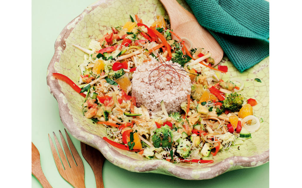 Rohköstliches asiatisches Veganes Gemüse mit Blumenkohl-Timbale