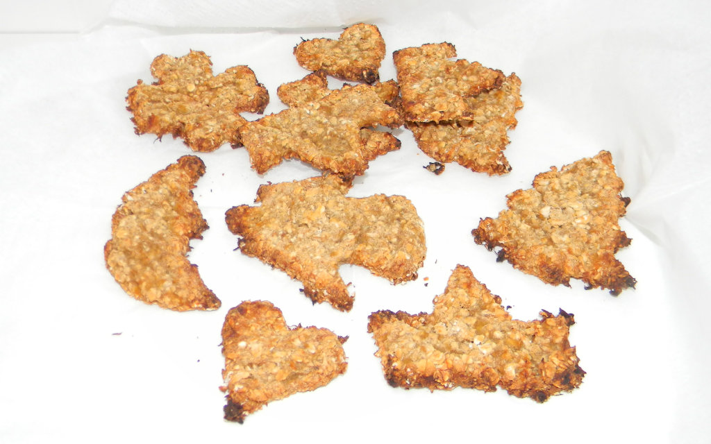- Die Kekse etwa 7 Minuten backen (auf die Färbung an den Rändern achten, wenn sie goldbraun werden sind sie fertig), auskühlen lassen und zusehen wie Euer Liebling sie verschlingt.
