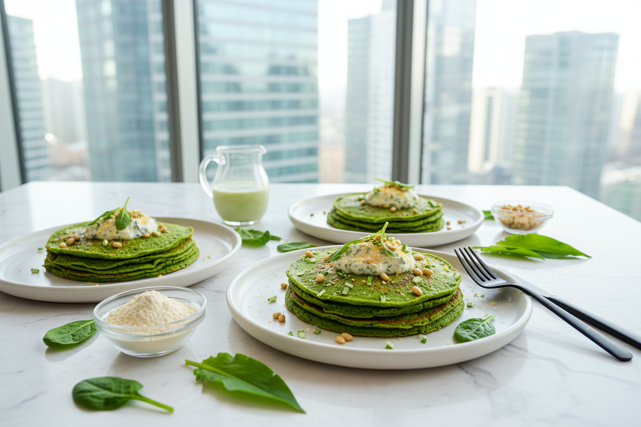 Wenn der Frühling erwacht und der Bärlauch in den Wäldern sprießt, ist es Zeit für diese köstlichen Palatschinken! Das Kichererbsenmehl macht sie nicht nur herrlich proteinreich, sondern sorgt auch für eine wunderbar herzhafte Note. Der frische Bärlauch und der zarte Spinat verleihen ihnen ihre leuchtend grüne Farbe – ein echter Hingucker auf dem Teller.