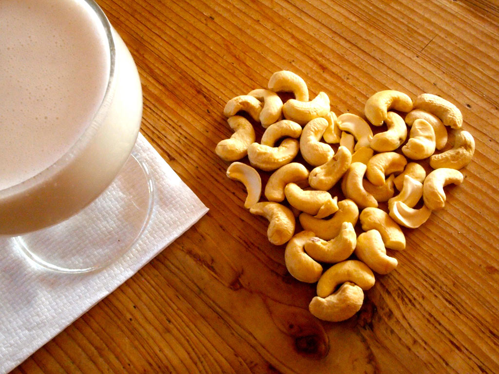 - In der Früh das Wasser abschütten, die Cashews in den Mixer geben und mit den 3 Tassen frischem Wasser für 2min mixen.