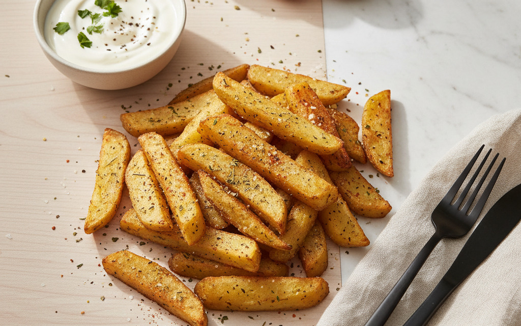Selbstgemachte Ofen-Pommes sind der perfekte Snack für Filmabende, Grillpartys oder als Beilage zu veganen Burger Patties. Mit dieser Methode werden sie außen knusprig und innen fluffig – ganz ohne Friteuse und mit nur einem Bruchteil des Fetts.