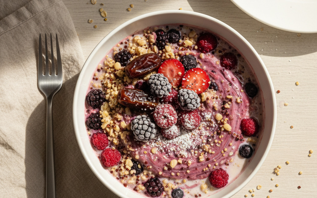 Veganes Frischkorn-Frühstücksbrei mit Beeren