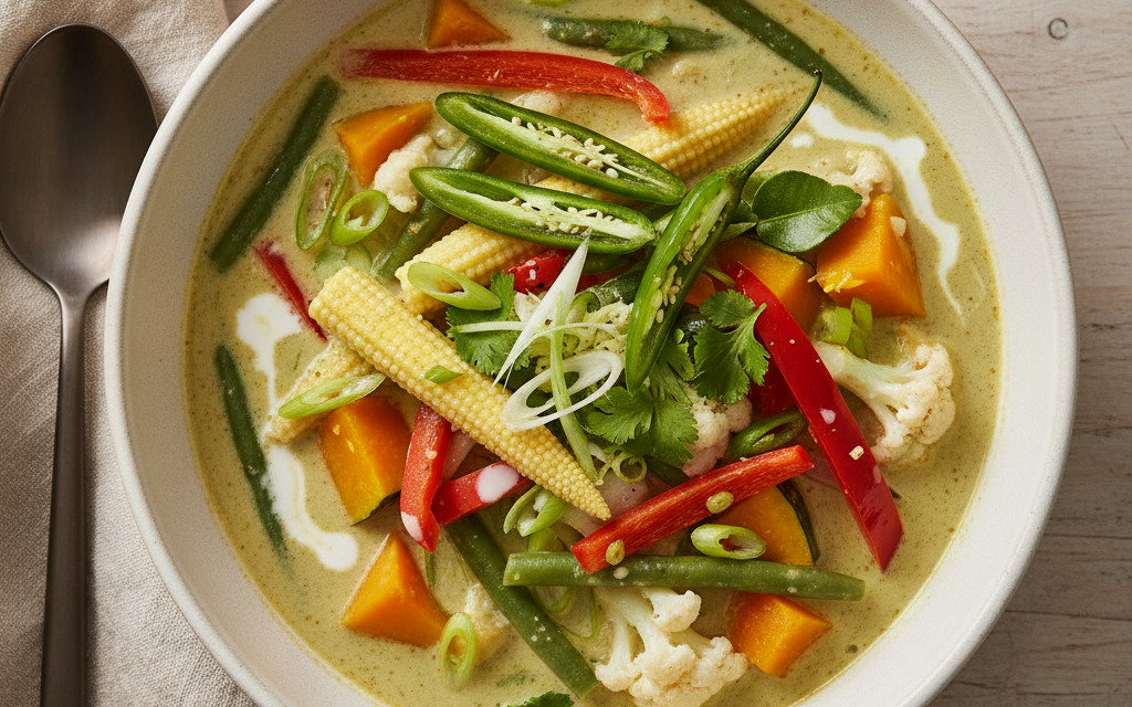 Veganes Green Curry mit Kokosmilch und knackigem Gemüse