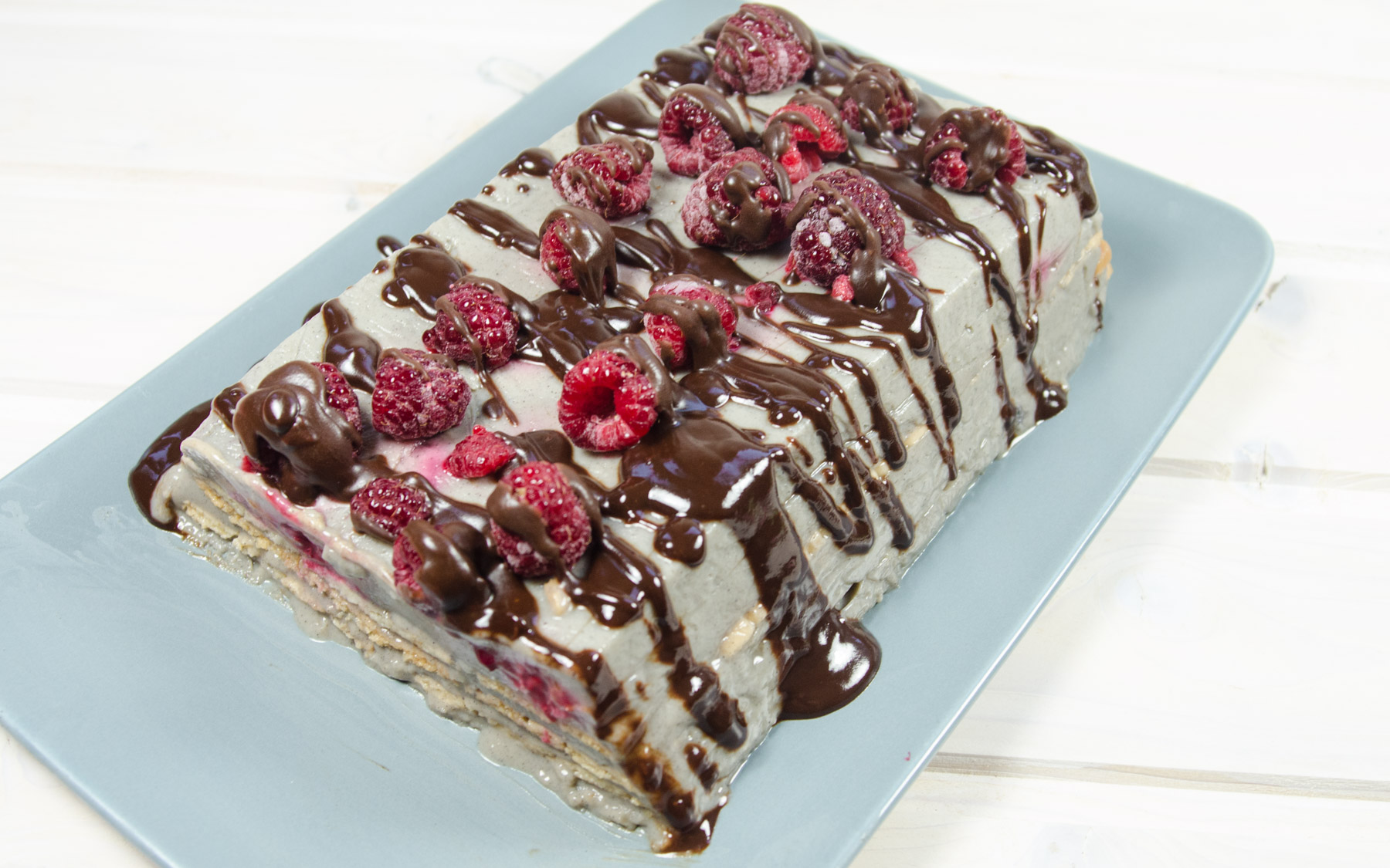 Veganer Kalter Hund mit Pudding & Himbeeren