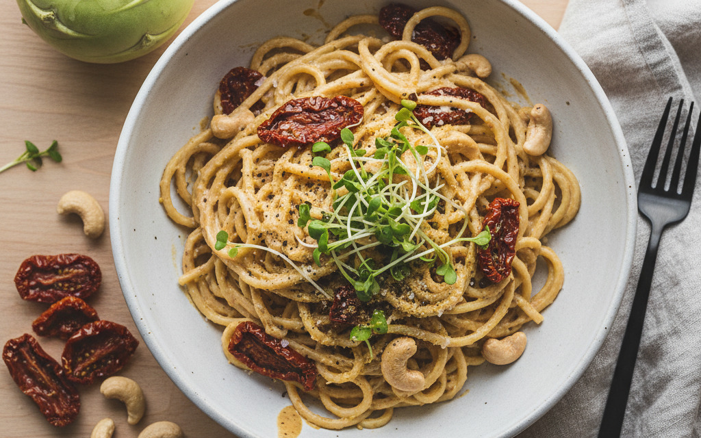 Vegane Kohlrabi-Pasta mit Cashew & getrocknete Tomaten Creme