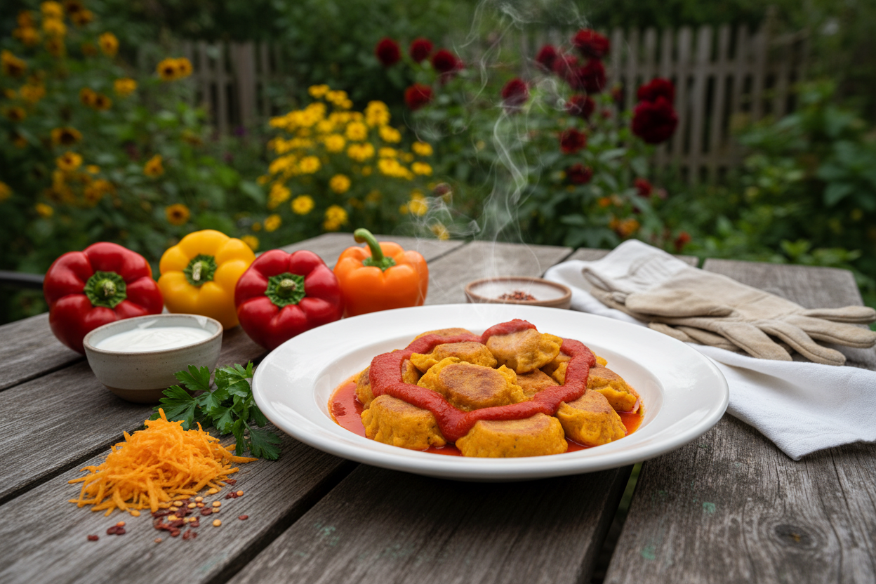 Kürbisknödel sind ein herrliches Herbstgericht - fluffig, sättigend und voller Geschmack. Die leuchtend orangefarbenen Knödel passen perfekt zur würzig-cremigen Paprikasosse und bringen Farbe auf den Teller. Mit fertigem Kartoffelteig ist dieses Rezept auch nach einem langen Tag schnell zubereitet.