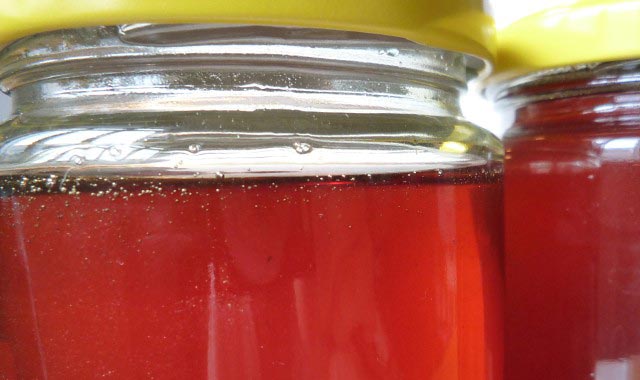 Nun den Zucker in einem Topf mit Zitronensaft erhitzen und leicht bräunen (karamellisieren). Mit der Flüssigkeit aufgießen und so lange kochen bis die gewünschte Konsistenz erreicht ist. In Gläser abfüllen und abkühlen lassen.