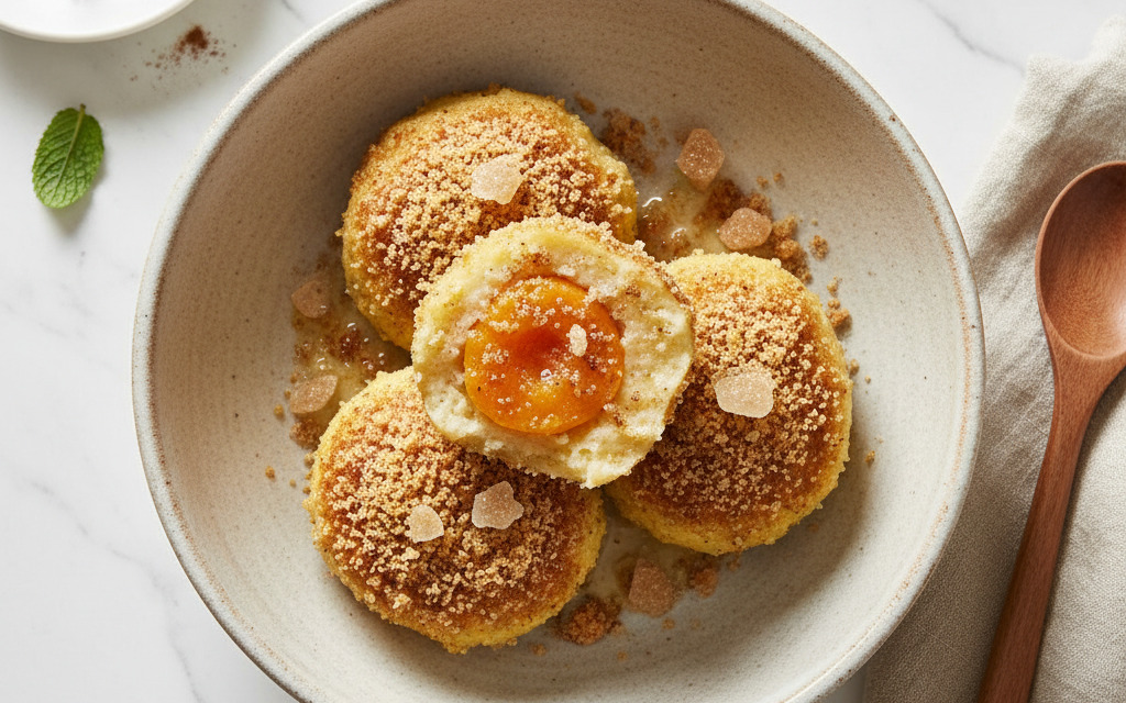 - Zimt und Zucker mischen. Gekochte Knödel in Butterbröseln wälzen, mit Zimt-Zucker und Puderzucker bestreuen.