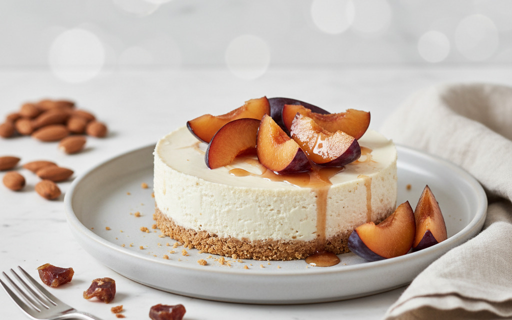 - Min. 2 Stunden im Kühlfach ruhen lassen. Von der Springform und der Folie befreien und mit geschnittenen Pflaumen belegen. Als Krönung haben wir den hübschen Kuchen noch mit Sirup von Sweet Freedom übergossen!