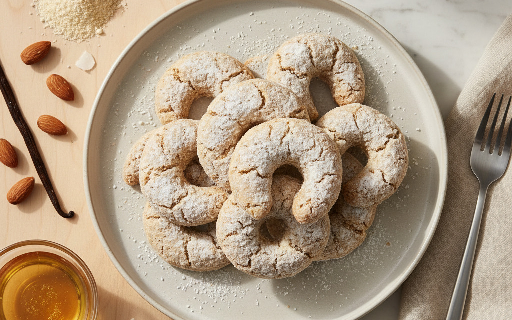 - Statt Staubzucker haben wir die Kekse mit Kokosmehl bestreut. Dem kann man natürlich auch noch Vanille hinzufügen. Gutes Gelingen!