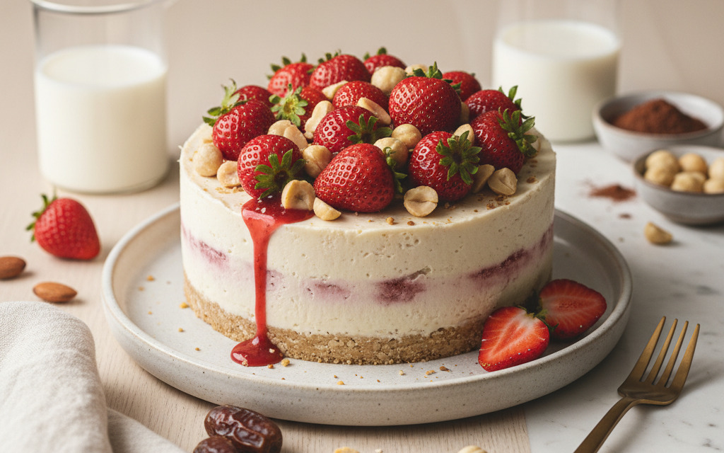 Rohköstliche vegane Erdbeer-Macadamia-Torte