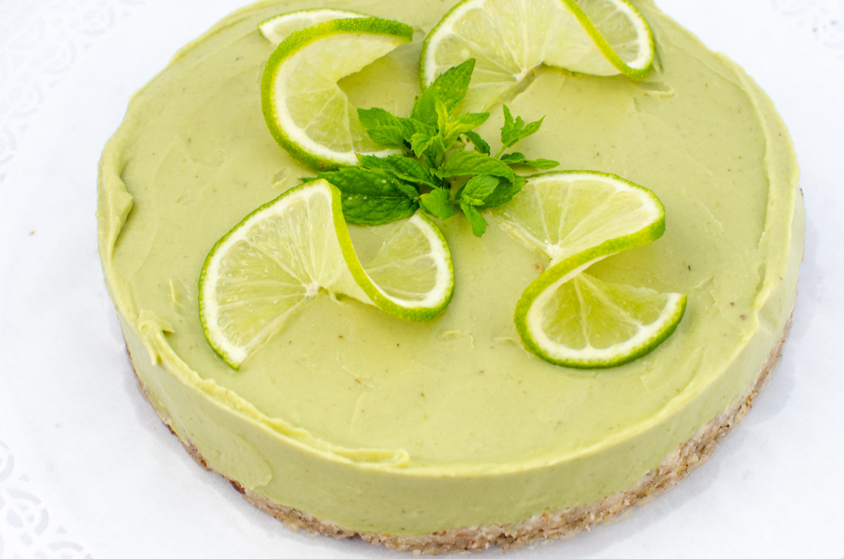 Erfrischender rohköstlicher Veganer Limettenkuchen