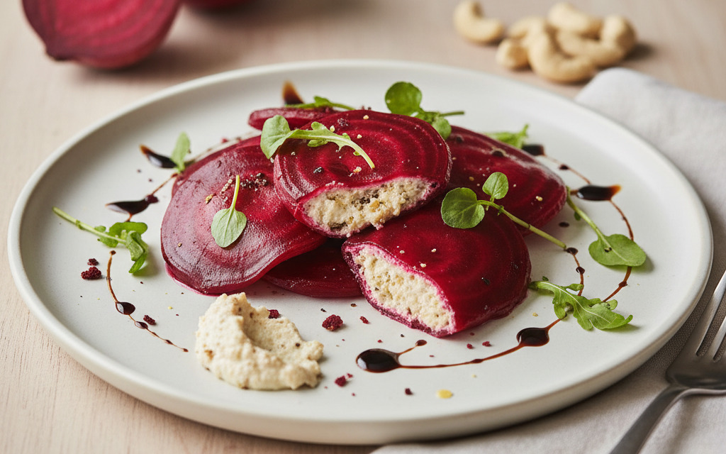 Vegane Rote-Bete-Ravioli mit Cashew-Käse-Füllung