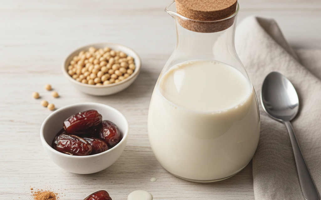 Schnelle vegane Soja-Milch mit einem Hauch von Vanille