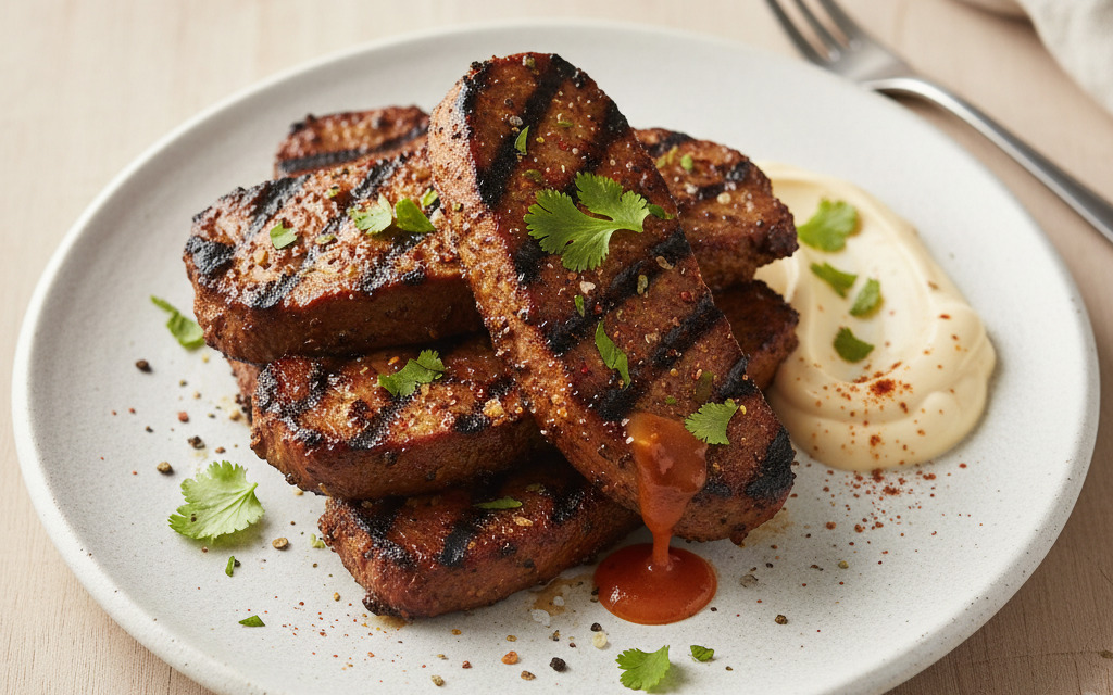 Marinierte vegane Seitan-Steaks mit feuriger Mayo