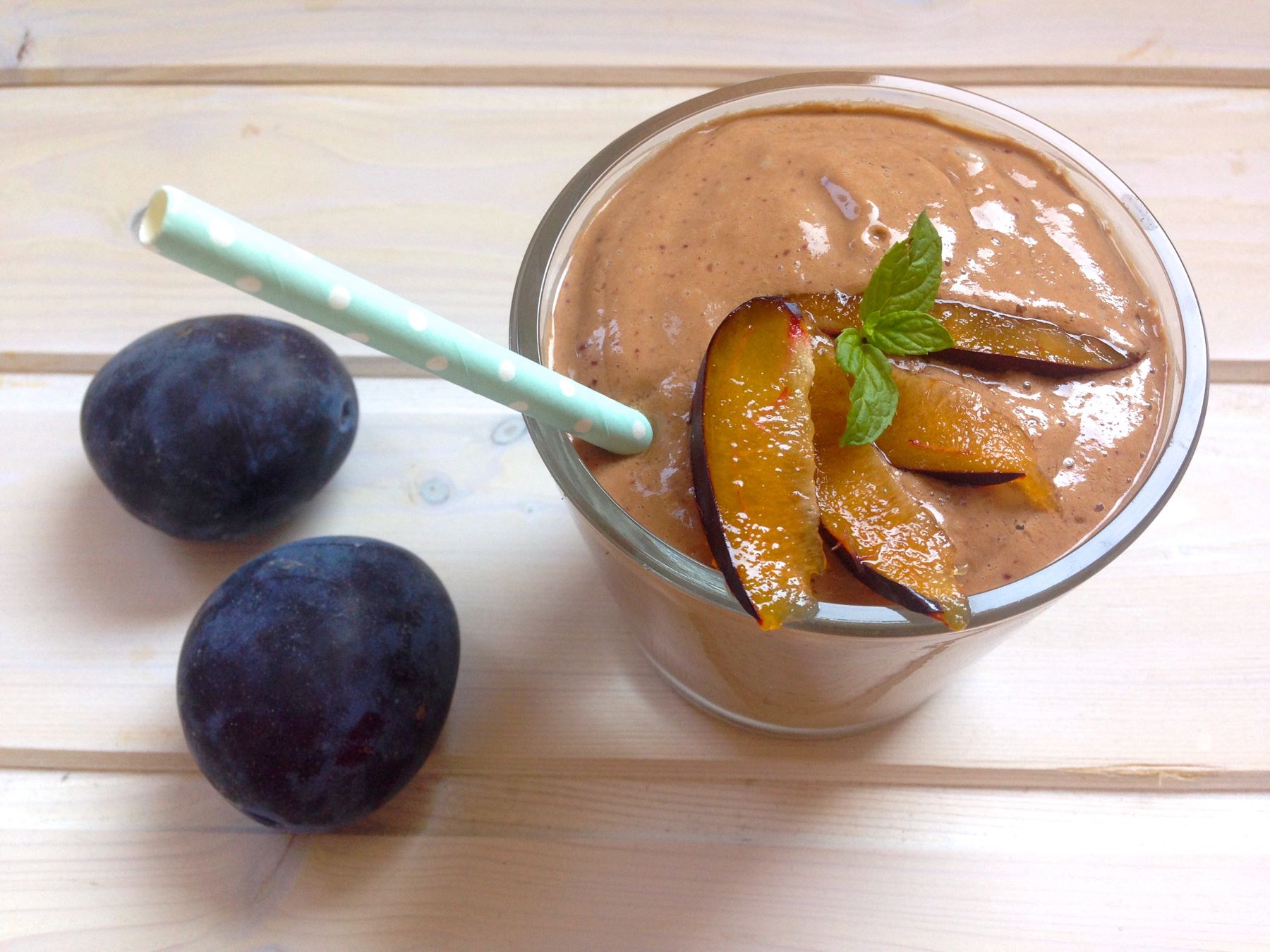 Veganer lila Gute Laune Smoothie mit Zwetschken & Mandeln