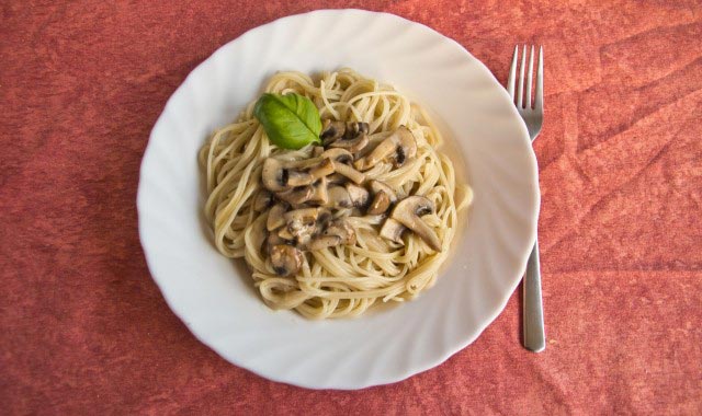 Vegane Spaghetti mit Champignon-Sahnesauce
