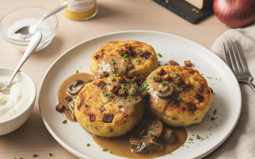 Vegane "Speck"-Knödel mit Räuchertofu