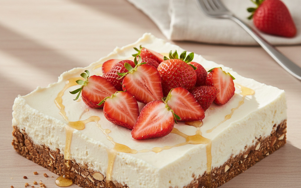 Veganer Erdbeer-Cheesecake mit Rohkostboden