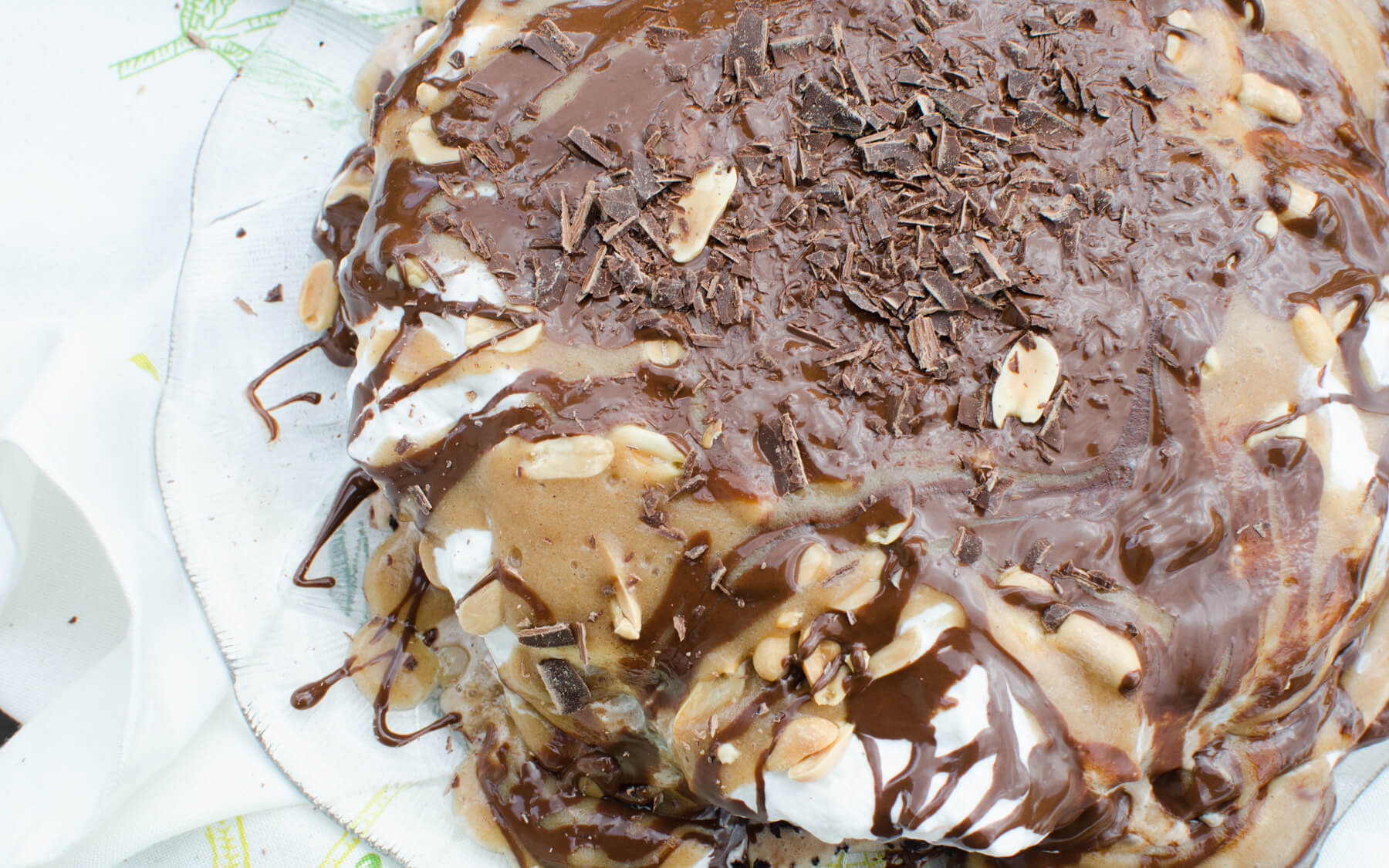 - Nun wird die Torte fertig gemacht: den Boden mit dem Eis und der Sahne mit einem Messer vom Tortenring befreien. Die Karamellcreme darauf verteilen, die Erdnüsse draufstreuen und mit der Schokoglasur überziehen. Schnell genießen!