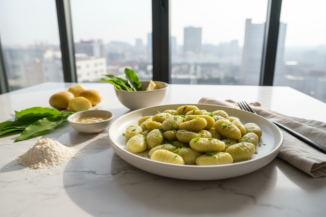 Nicht überkneten: Sobald der Teig zusammenhält, hör auf. Zu langes Kneten aktiviert das Gluten und macht die Gnocchi zäh.
