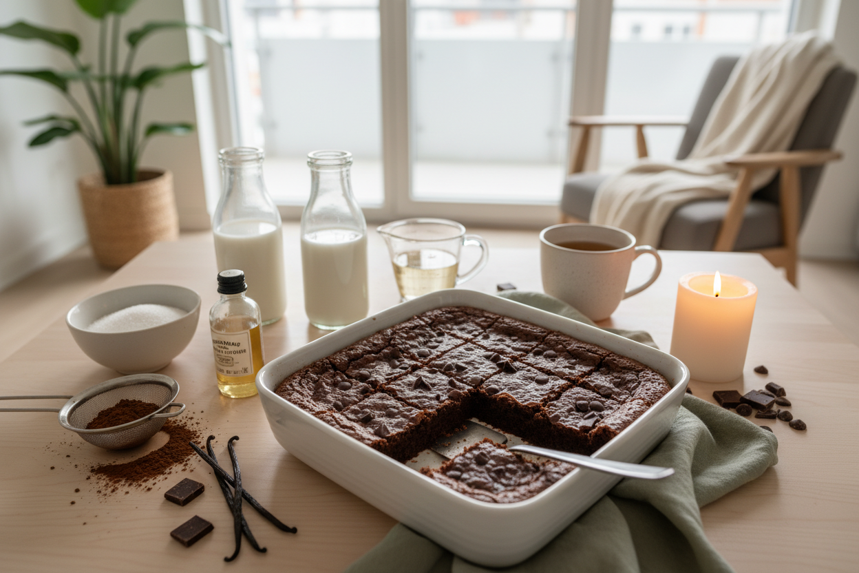 Das Geheimnis perfekter veganer Brownies liegt in der richtigen Balance: Genug Fett fuer Saftigkeit, die richtige Menge Mehl fuer Struktur ohne Trockenheit, und drei Schokoladen-Komponenten (Kakaopulver, gehackte Schokolade und optional Schokostueckchen) fuer maximalen Schokoladengeschmack.
