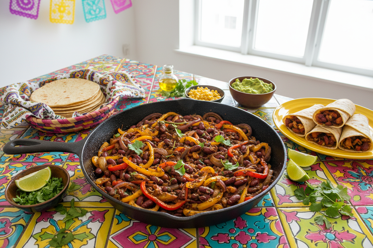 Wenn der Duft von karamellisierten Zwiebeln und würzigen Gewürzen durch die Küche zieht, weißt du: Heute gibt's Tex-Mex! Diese veganen Fajitas sind das perfekte Feierabend-Essen - in nur 25 Minuten steht ein farbenfrohes, aromatisches Gericht auf dem Tisch, das die ganze Familie begeistert.