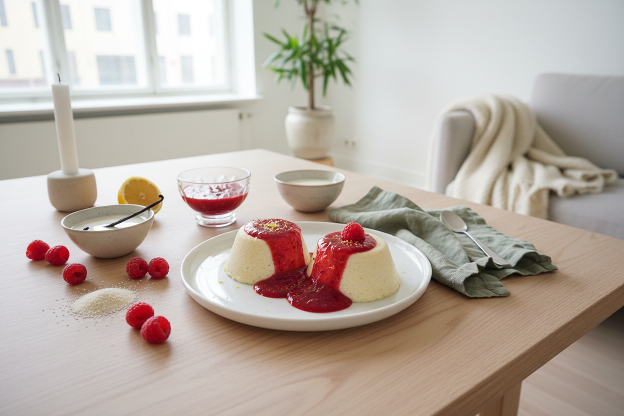Vegane Grießflammeri: Cremiger Klassiker mit Himbeersoße