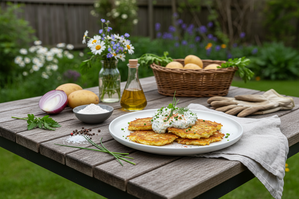 Diese veganen Kartoffel-Rösti mit Kräuterquark beweisen: Traditionelle österreichische Küche kann auch vegan richtig gut schmecken!