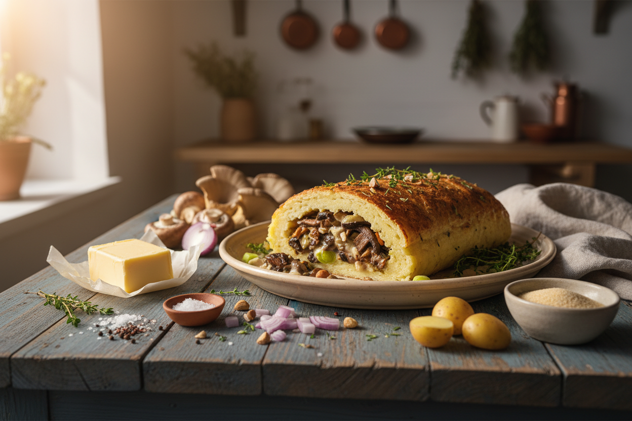 Vegane Kartoffelrolle: Herzhaft gefüllt mit Pilzen