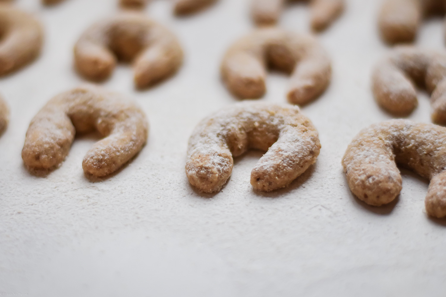 Die Kipferl sollten nach dem Backen auf jeden Fall noch sehr hell, aber nicht mehr weich sein. Sie härten beim Abkühlen noch nach. Weitere Rezepte wie dieses und Tipps zu einem nachhaltigen Alltag findest du bei Waste no Thyme.