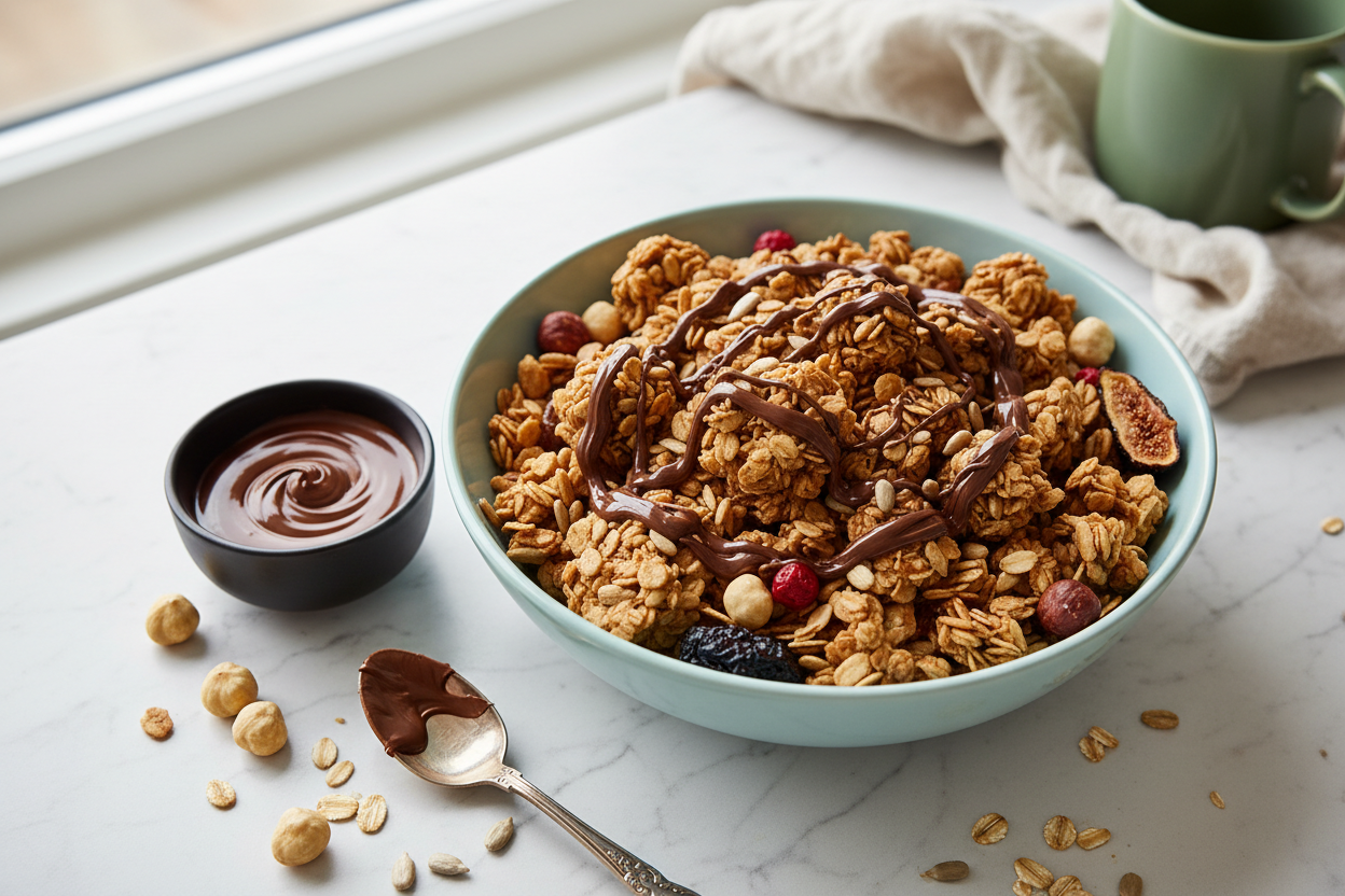 Vegane Nutella-Granola - knuspriges Müsli mit Nutella Plant Based