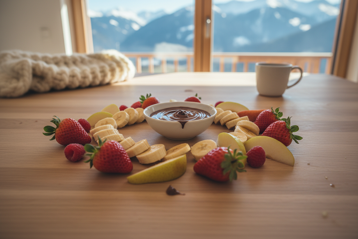 - Obst auf einem Brett oder Teller anrichten, Nutellaschälchen in die Mitte. Eindippen, genießen.