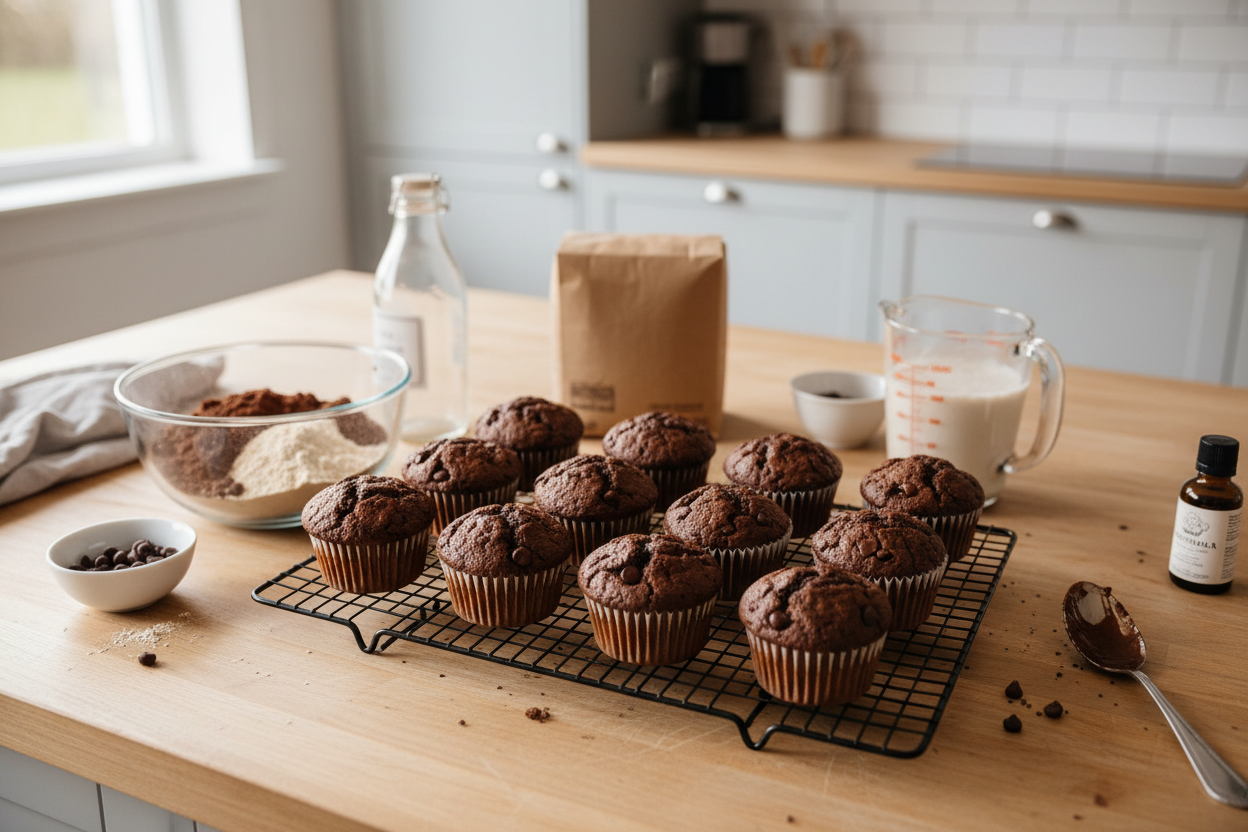 Vegane Protein-Schoko-Muffins sind das Beste aus zwei Welten: saftig-schokoladig wie ein richtiger Muffingenuss, dabei mit rund 9g Protein pro Stück - ganz ohne Eier, ohne Milch, ohne Kompromisse beim Geschmack. Das Geheimnis liegt in der Kombination aus Hafermehl, veganen Proteinpulver und einem simplen Buttermilch-Trick, der den Teig trotz fehlendem Ei unglaublich luftig macht.
