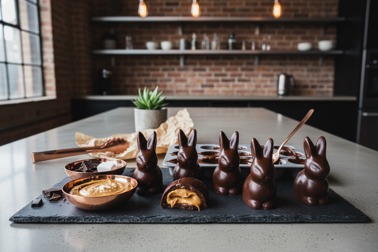 Schoko-Osterhasen gehören zu Ostern wie Eiersuchen im Garten. Und die gute Nachricht: Du brauchst weder Profi-Ausstattung noch Stunden in der Küche, um wunderschöne vegane Schoko-Osterhasen herzustellen. Mit einer Silikonform, guter Schokolade und 20 Minuten aktiver Zeit zauberst du Ostergeschenke, die besser schmecken als alles aus dem Supermarkt.